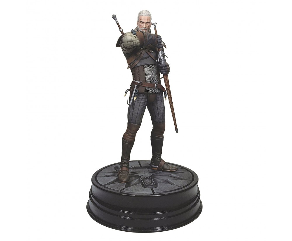 From the critically acclaimed video game Depicts Geralt, the monster-slaying protagonist from the game Figure stands 8" tall on a 1.5" base Custom painted figure Deluxe window box packaging