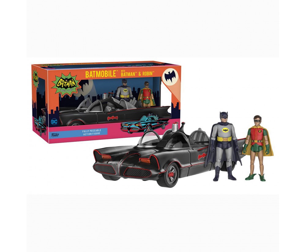 Figures feature nine points of articulation and are 3.75" tall. Action figure set is complete with Batman's signature Batmobile. This 11" ride is Funko's first ride featuring rolling wheels.