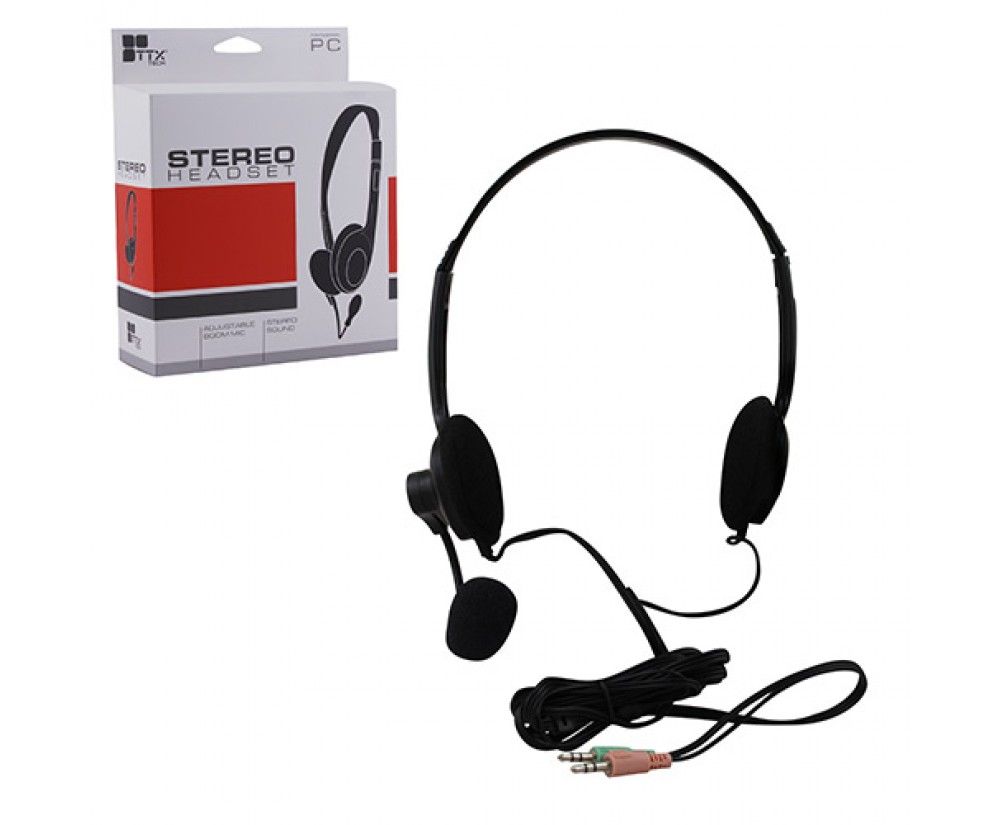 Pc Headset Stereo Headset Adjustable Boom Mic Black (ttx Tech) MC-PC-206