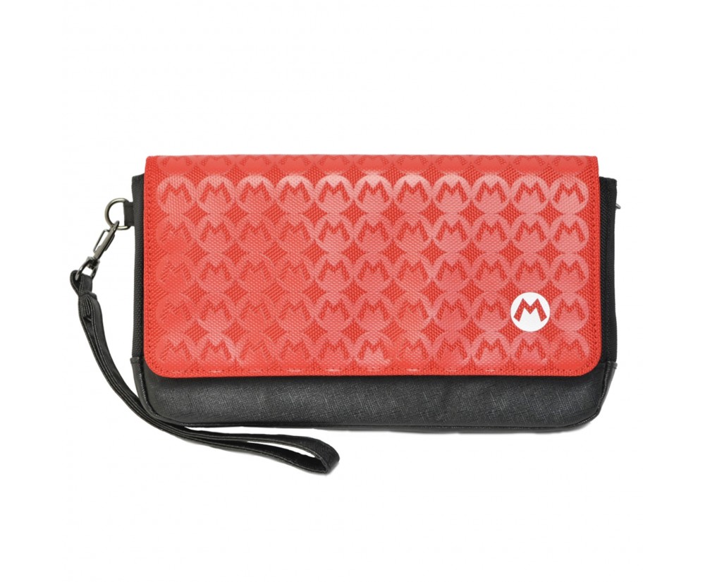Targeting Adult Users Holds Switch Console, game cards, and additonal accessories Includes: clip-on strap&storage pocket Features orignal Mario artwork Officially Licensed Nintendo