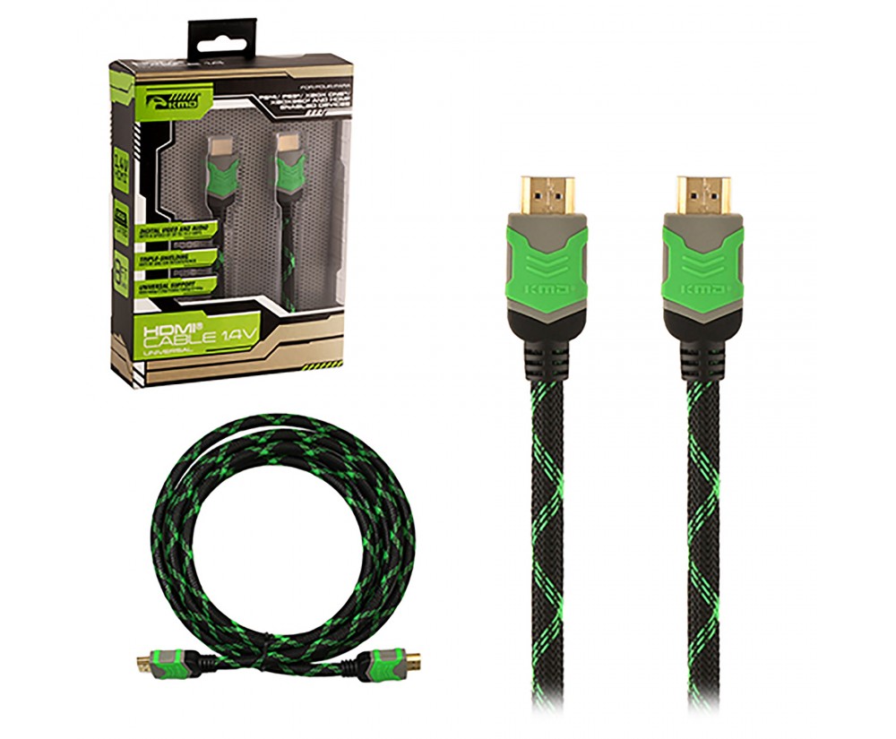 Ensure maximum signal transfer by plugging in the KMD® premium-quality cable to your 1.3/1.4 HDMI®-compatible devices. This heavy-duty cable was built to protect against EM interference, resist corrosion, and increase conductivity quality. Obtain superb, digital video and audio signal at a transmission speed of up to 10.2Gbps, plus, support of up to 1080p and 2160p image resolution. 1.4V HDMI®- compatible cable with Ethernet Compatible with PS®4, PS3®, Xbox One™, Xbox 360®, and HDMI® enabled devices Triple-Shields protect against RF and EM interference Digital video and audio transmission speed of up to 10.2 Gbps Supports 480i, 480p, 720p, 1080i, 1080p, 2160p resolution Gold-plated connector resists corrosion and ensures an optimum connection Gauge: 32AWG / OD 7.3 MM Cable length: 8ft.