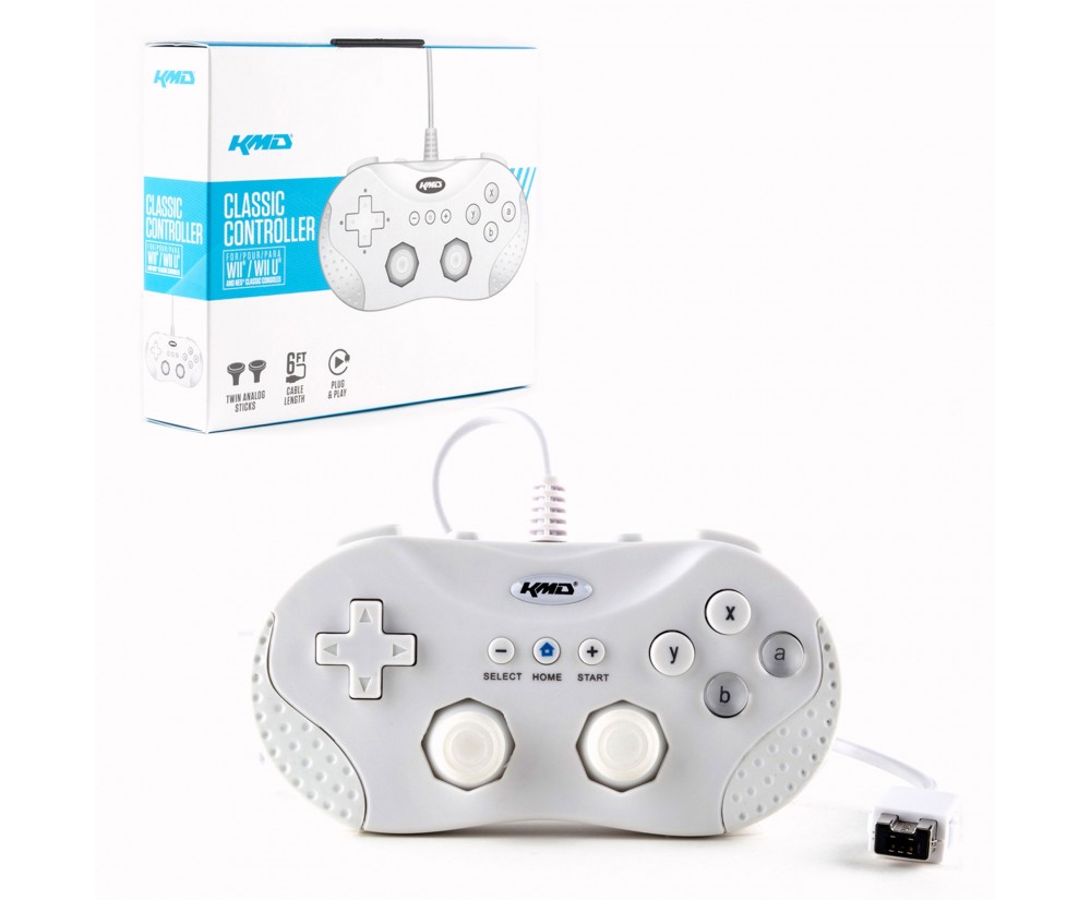 Ergonomically designed for comfort with a classic gaming feel! The KMD Classic Controller plugs directly into the Wii/Wii U console with a 6 foot cable to play almost anywhere in the room. Accompanied with a four way D-pad, twin analog sticks, four shoulder and face buttons to take your game to the next level! Ergonomic design with added grip Twin analog sticks Four face buttons (X, Y, B, A) Four shoulder buttons 4-way D-pad 6ft Cable Compatible with Wii/Wii U/NES Classic