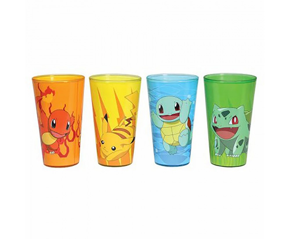 Toast to many Pokemon Battles with your Friends. This four pack includes Charmander Bulbasaur Squirtle Pikachu. Do not put in microwave. 16 oz.