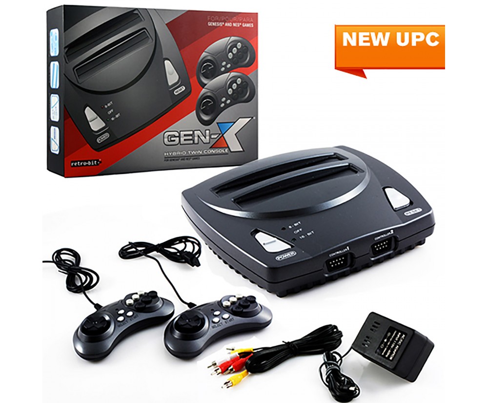 Sonic the HedgehogTM (tm) and Streets of RageTM (tm) are back to their glory days. Gen-X is compatible to play with old Sega Genesis(tm), 16-bit cartridges. Also included are 2 controllers as well as an AC adapter and set of AV cable. Gen-X brings together the best from both 8-bits as well as 16-bits. Enjoy a nostalgic trip with the 8-bit NES Cartridges! Compatible with many Sega Genesis cartridges. Also compatible with NES (tm) 8 Bit cartridges. Includes AC adapter. Two controllers included.