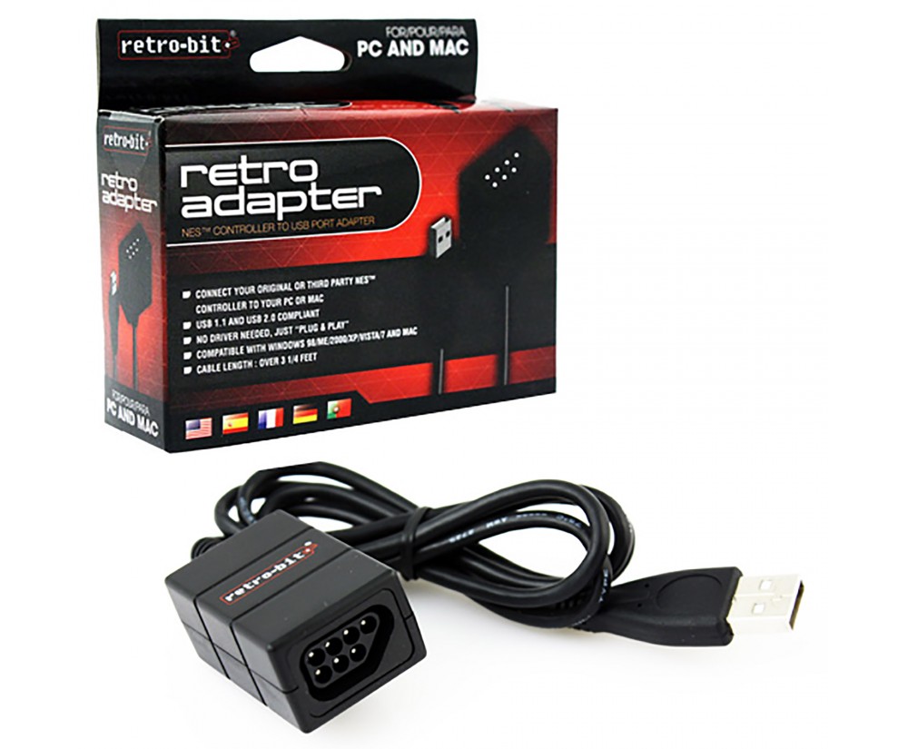 Feel like going back to your old PC or MAC? Retro Adapter – the ideal tool! Now you can enjoy your PC games, retro emulators and your favorite PC games using the original or third party NES controller. It's not like you need much more than the D-pad and some buttons. Cable length: Over 3 1/4 feet USB 1.1 and USB 2.0 compliant No driver needed, just "plug&play" No external power source required Compatible with Windows 98/Me/2000/XP/Vista/7 et Mac