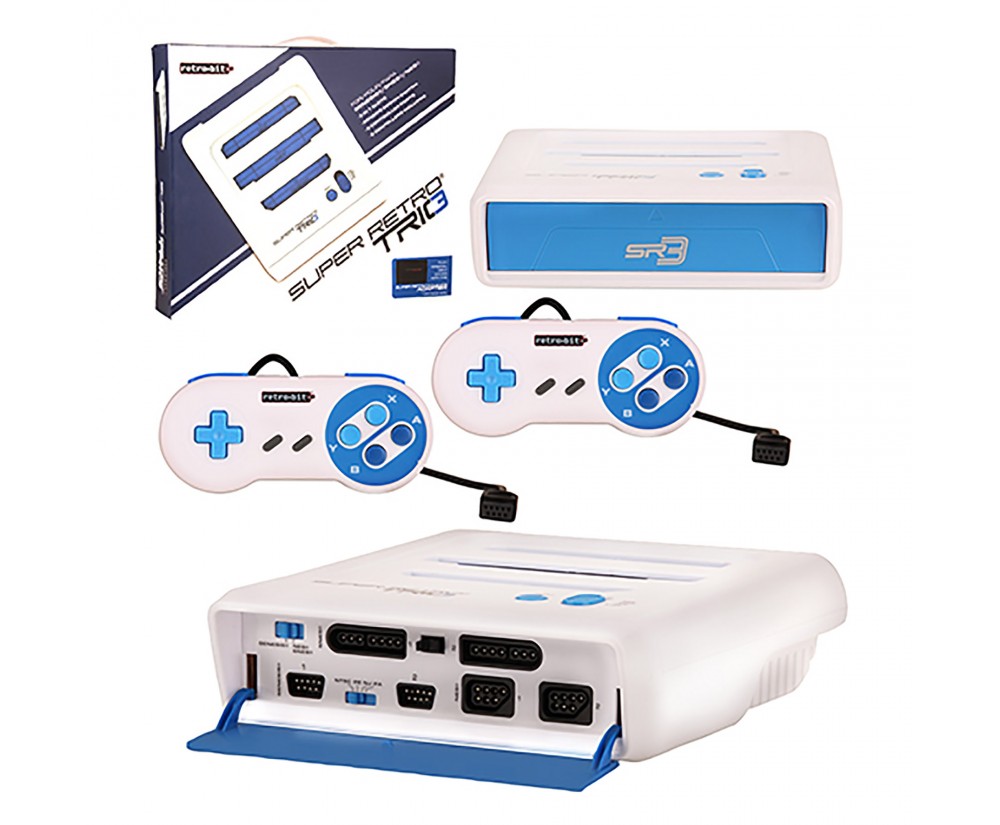 Console - Super RetroTRIO - NES/SNES/Genesis - 3 in 1 System - White/Blue (Retro-Bit)