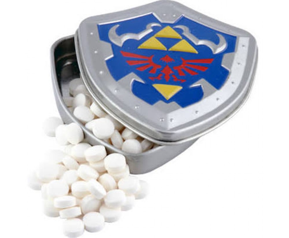 Here we have individual packaged 0.7oz Zelda shield-shaped tins of mints, great as stocking stuffers for the hollidays!